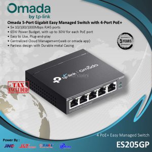 Omada ES205GP by tplink – 5-Port Gigabit Easy Managed Switch with 4-Port PoE+