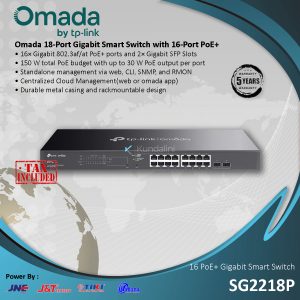 Omada SG2218P by tplink – 18-Port Gigabit Smart Switch with 16-Port PoE+