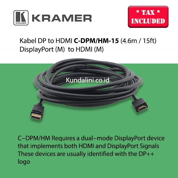 Kramer C-DPM/HM-1 – 4.6m Displayport (M) to HDMI (M) Cable [15ft]