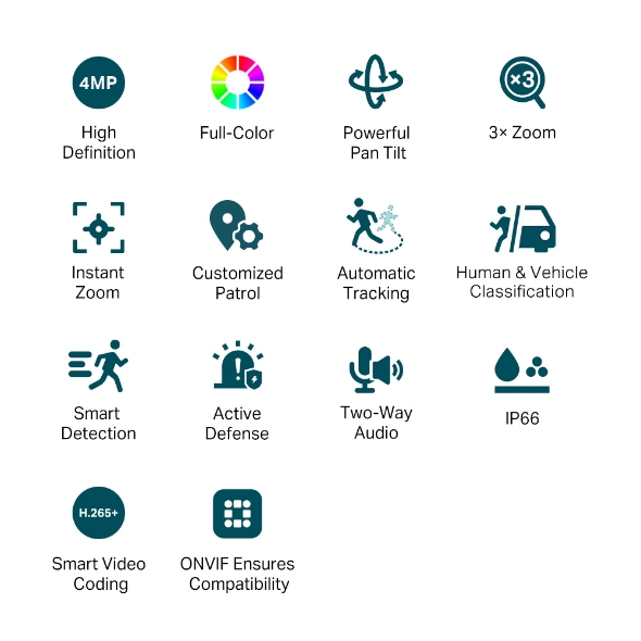 | Smart Event | • Area Intrusion Detection • Line-Crossing Detection • People Detection • Vehicle Detection • Region Entering Detection • Region Exiting Detection • Object Abandoned Detection • Object Removal Detection • Abnormal Sound Detection |