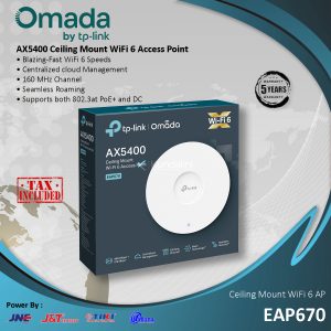 Omada EAP670 by tp-link – AX5400 Ceiling Mount WiFi 6 Access Point
